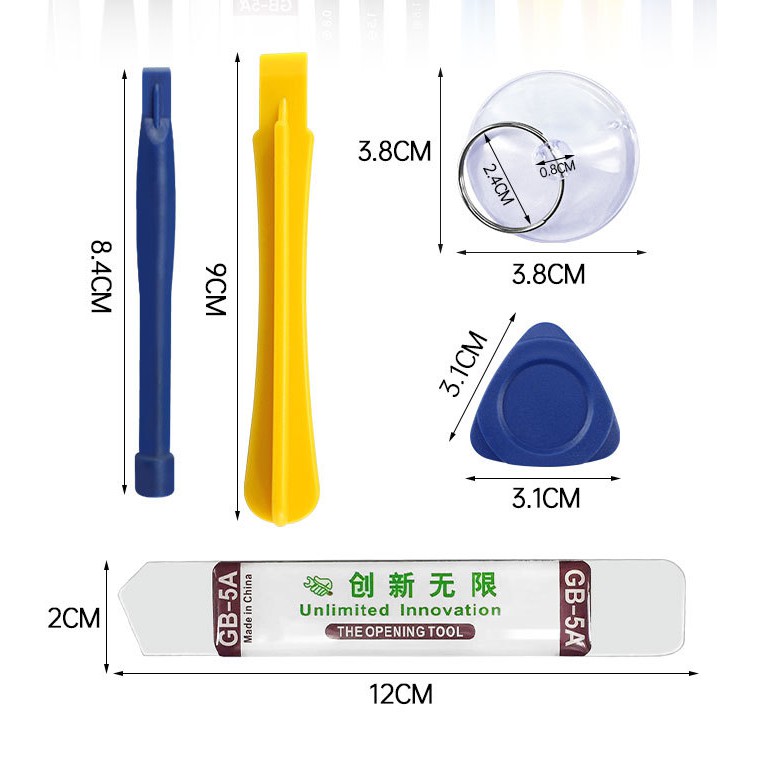 Bộ dụng cụ sửa chữa đa năng có tới 20 món giúp cho các bác thợ có đủ công cụ để sửa chữa hầu hết các loại đồ điện tử nhỏ như: Điện thoại, đồng hồ, máy tính, ipad...Bao gồm: các loại tay nhấc màn hình, que chọc sim, nhíp gắp, dụng cụ cậy màn hình.