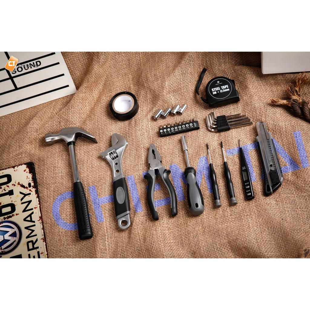 Điểm độc đáo của bộ dụng cụ đa năng Jiuxun Tools đó là tích hợp 60 công cụ trong 1 bộ sản phẩm, giúp người dùng dễ dàng tìm được công cụ sử dụng phù hợp. Cụ thể bộ sản phẩm bao gồm băng keo cách điện, dao rọc giấy, tuốc nơ vít dẹp, kìm, búa, thước dây 3m, bộ 5 khóa lục giác, cờ lê, bút thử điện, 2 tuốc nơ vít nhỏ, 1 tuốc nơ vít có thể đổi đầu vít và bộ đầu vít ốc vít, 1 hộp lưu trữ. Với số lượng sản phẩm lên đến 60 vô cùng phong phú, Jiuxiun Tools cho khả năng đáp ứng mọi nhu cầu sử dụng từ cắt dây điện, cố định đinh bị lỏng, vặn vít trong bàn ghế, quạt điện, máy tính, kiểm tra mạch....