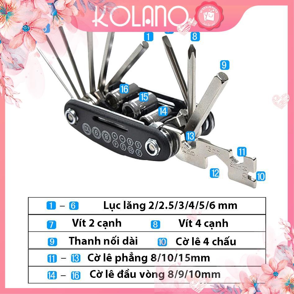 Dụng cụ đa năng KOLANO dụng cụ sửa chữa đồ dùng, xe đạp đa năng 16 món tiện dụng HG-001210