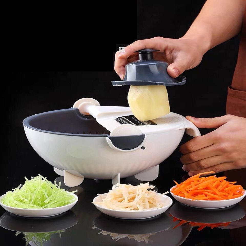 Bộ Dụng Cụ Đa Năng Thông Minh Nạo Rau - Củ - Quả Kèm Rổ 9 Trong 1- Bộ Dụng Cụ Đa Năng Thông Minh Nạo Rau - Củ - Quả Kèm Rổ 9 Trong 1 Đa Năng thiết kế thông minh, nhỏ gọn và nhiều chức năng với cấu tạo gồm: lưỡi gọt (nạo) vỏ củ quả (củ khoai tây, bầu, bí, cà rốt, mướp, susu…); lưỡi bào (cắt) củ quả thành sợt nhỏ (Bào cà rốt, đu đủ, dừa…); rổ hứng rửa xoay 360 độ không lo bị rơi ra ngoài… giúp việc chế biến các món ăn thật đơn giản và dễ dàng và đẹp mắt.