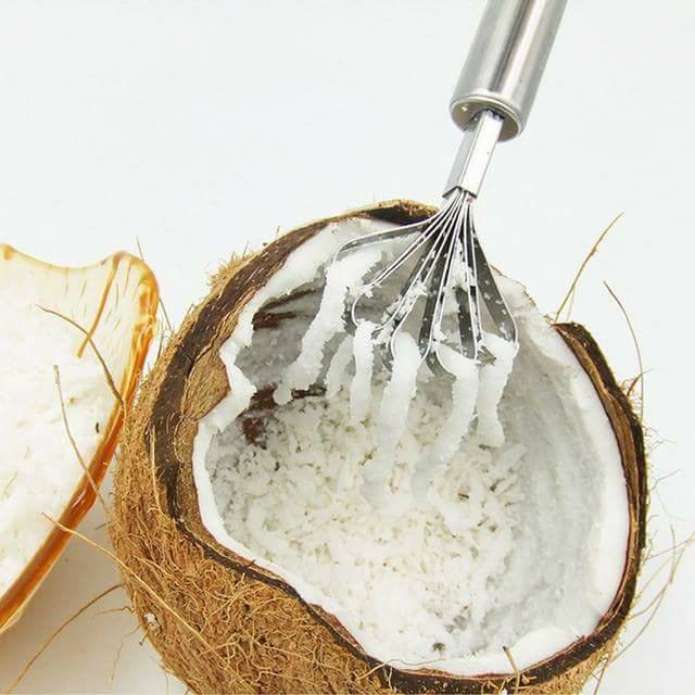 Đồng thời dụng cụ còn giúp nạo dừa thành những sợi thơm ngon.