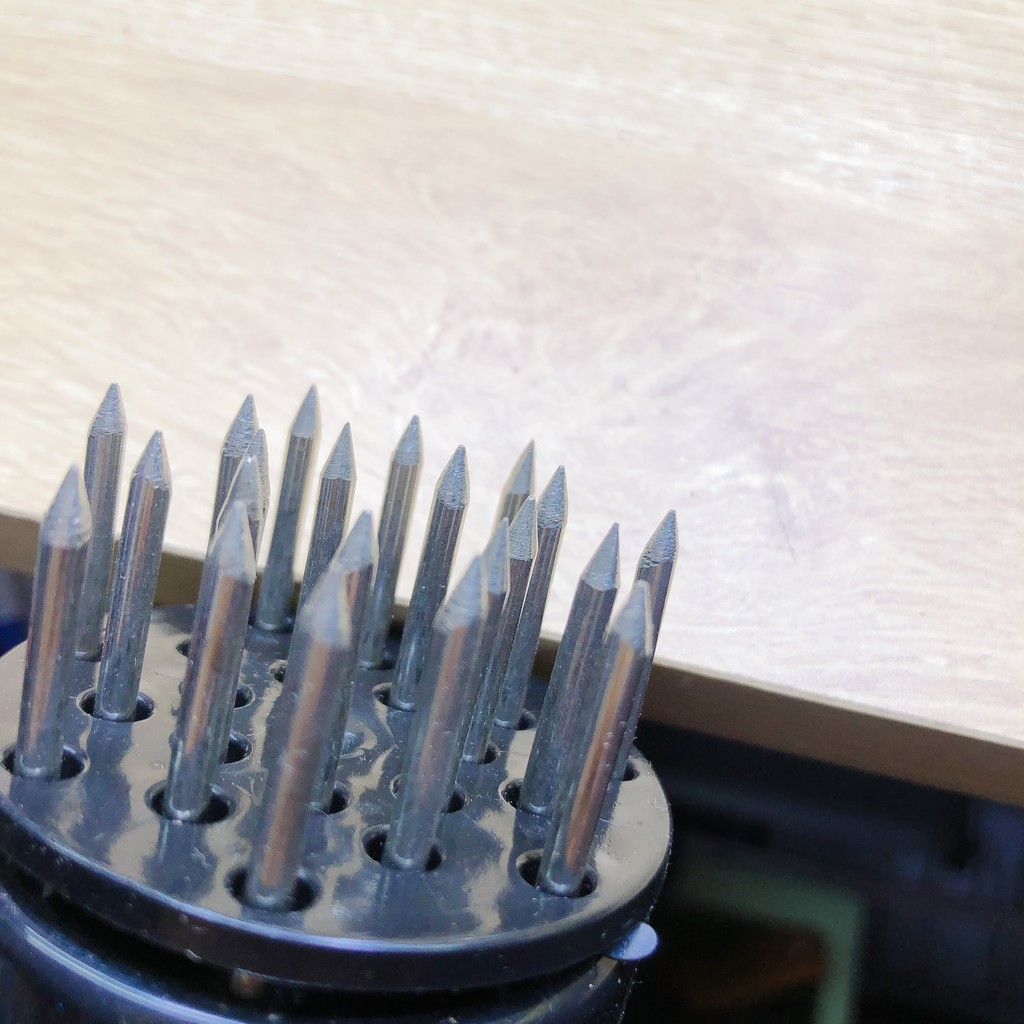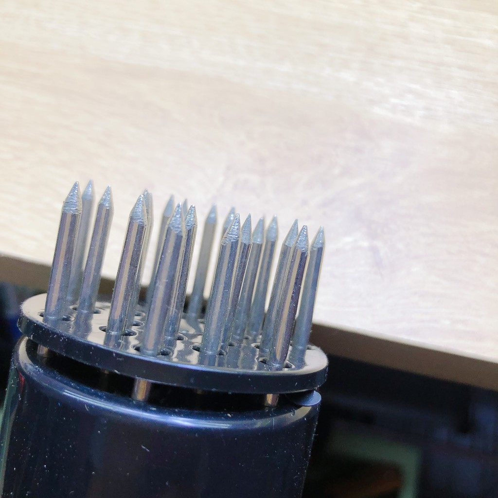 ❌ thiết kế 21 mũi đâm inox làm mềm thịt nhanh chóng, giúp gia vị thấm sâu vào miếng thịt, tiết kiệm thời gian chế biến.