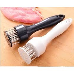 ❸ - Kiểu dáng nhỏ gọn, vừa vặn tay cầm, làm bằng chất liệu nhựa, inox bền và an toàn cho sức khỏe, giúp làm mềm thịt, bít tết trước khi ướp gia vị