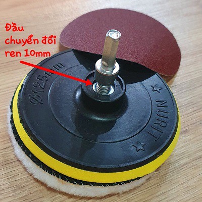 Bộ Dụng Cụ Đánh Bóng 4 Món Gồm Phớt ,Bông Đánh Size 125mm và Đầu Chuyển Đổi M10