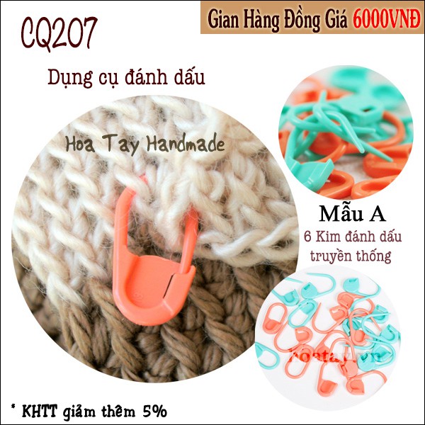 Dụng cụ đánh dấu - Kim đánh dấu là phụ liệu không thể thiếu trong đan móc. Tại Hoa Tay Handmade có 4 loại dụng cụ đánh dấu phù hợp với nhu cầu sử dụng cho từng sản phẩm.Mẫu A - 6 Kim đánh dấu truyền thống được sử dụng phổ biến nhất.