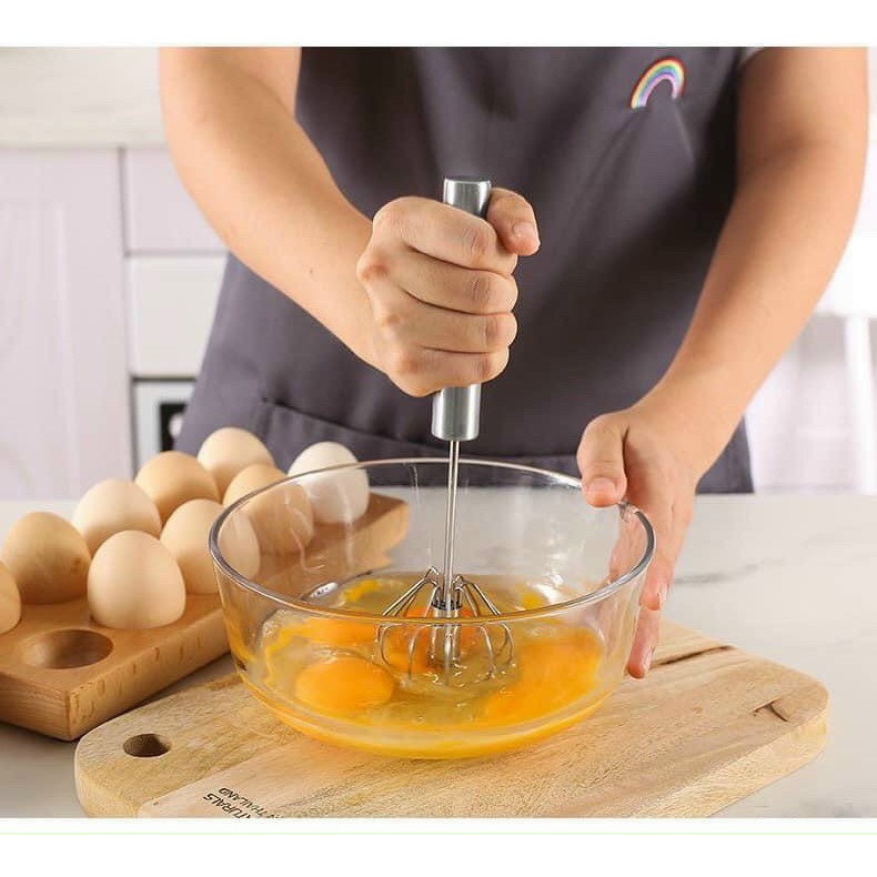 - Sản phẩm được thiết kế thông minh, giúp các chị em chế biến các món ăn từ trứng nhanh chóng và tiện lợi hơn.- Dụng cụ được thiết kế phần đánh trứng tự quay chỉ bằng lực ấn nhẹ ở tay cầm.