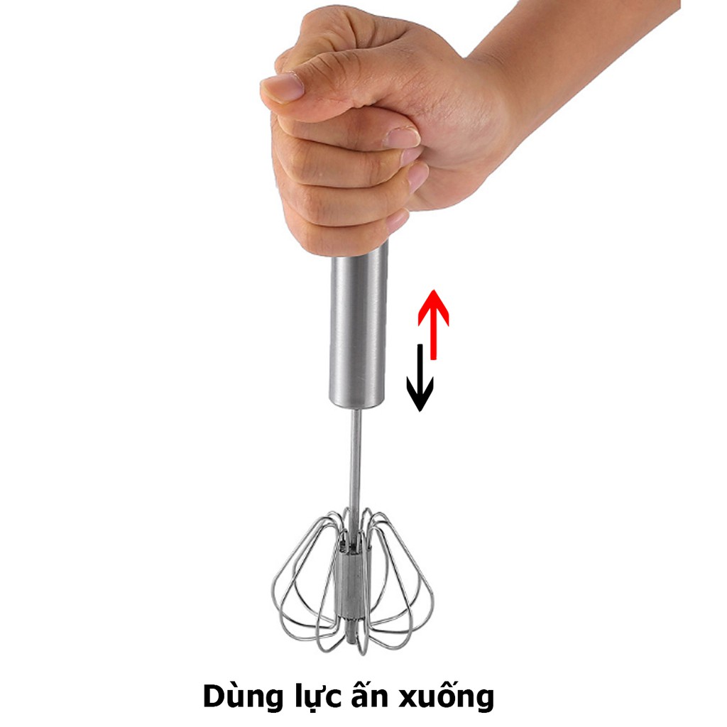 Cây Đánh Trứng Inox Cầm Tay có trục xoay tự động công dụng: Dùng để tạo bọt, đánh bông kem, trứng sữa bằng cách ấn trục chuyển động lên xuống.