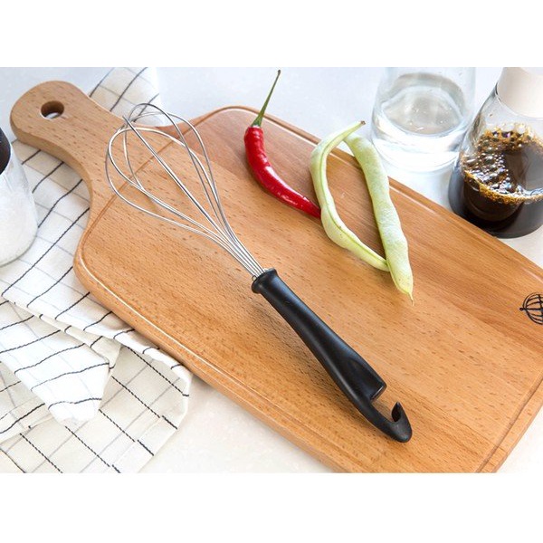 + Để mang đến tính tiện dụng khi sử dụng, đuôi của dụng cụ đánh trứng có móc treo để bạn có thể treo lên giá khi không sử dụng, tiết kiệm không gian và giúp gian bếp thêm gọn gàng.