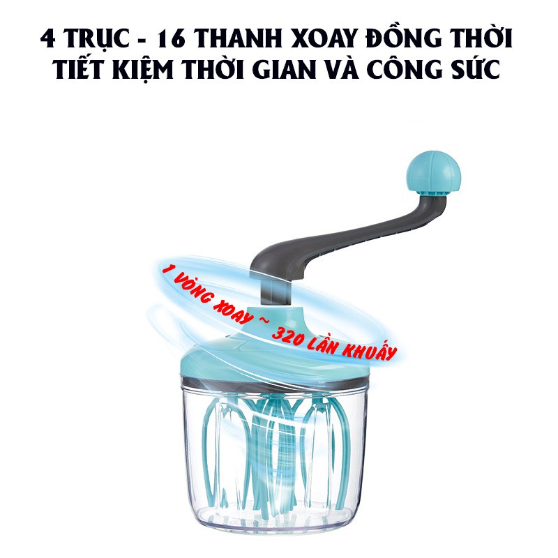 ✅TIẾT KIỆM THỜI GIAN: Chỉ cần xoay tay cầm, quay đồng thời 4 trục, 16 thanh khuấy khuấy cùng lúc sẽ giúp tiết kiệm thời gian và công sức, 1 vòng quay xấp xỉ 320 lần khuấy