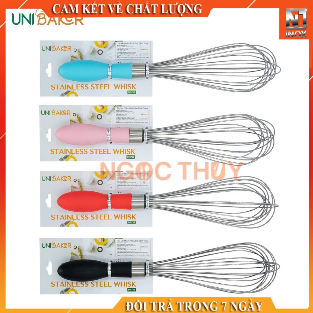 -Phới lồng đánh trứng là dụng cụ không thể thiếu trong quá trình đánh trứng, trộn bột làm các loại bánh. Phới đánh trứng Unibaker đánh các loại nguyên liệu theo chiều dọc khác với phới lò xo đánh theo chiều ngang, giúp hỗn hợp bông đều, dễ kiểm soát, không sợ bị quá tay.