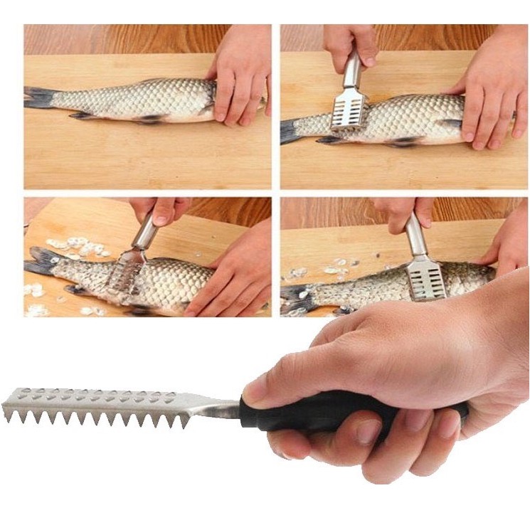 - Dụng cụ đánh vảy cá rất dễ sử dụng, chỉ cần kéo ngược hướng xếp của vảy cá sẽ lấy sạch vảy cá và bề mặt cá bằng phẳng.