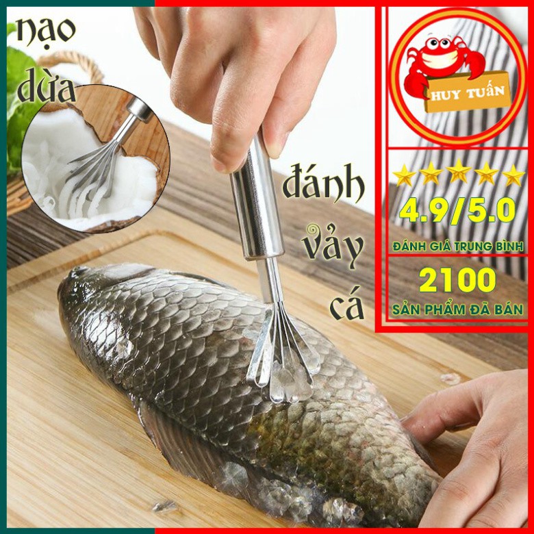 Dụng cụ đánh vảy cá, nạo dừaKhi đánh vảy cá, nhiều người nội trợ thường dùng dao nên không lấy được hết vảy cá hoặc nếu làm kỹ sẽ lấy đi cả phần thịt cá. Dụng cụ nạo dừa đánh vẩy cá 2 trong 1 giúp khắc phục những hạn chế trên. Ngoài ra sản phẩm còn được sử dụng để nạo dừa , tạo thành những sợi dừa thơm ngon.