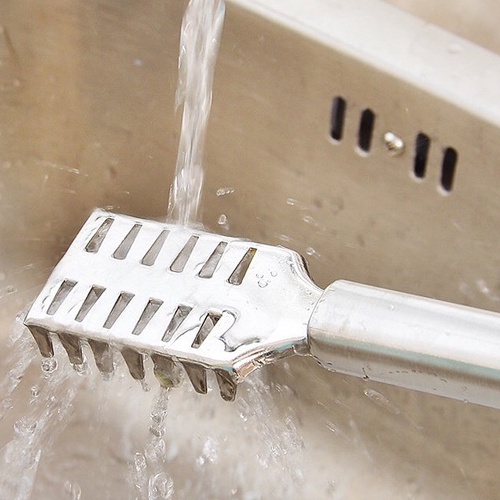 - Dụng cụ đánh vảy cá làm bằng inox không gỉ, dễ vệ sinh, có móc treo gọn gàng, thẩm mỹ.
