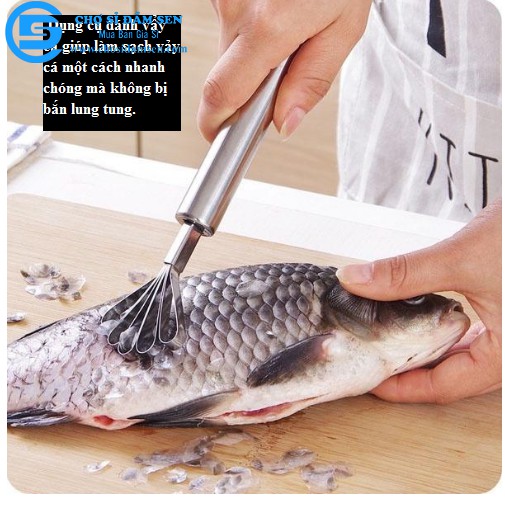- Dụng cụ đánh vẩy cá giúp làm sạch vảy cá một cách nhanh chóng mà không bị bắn lung tung.