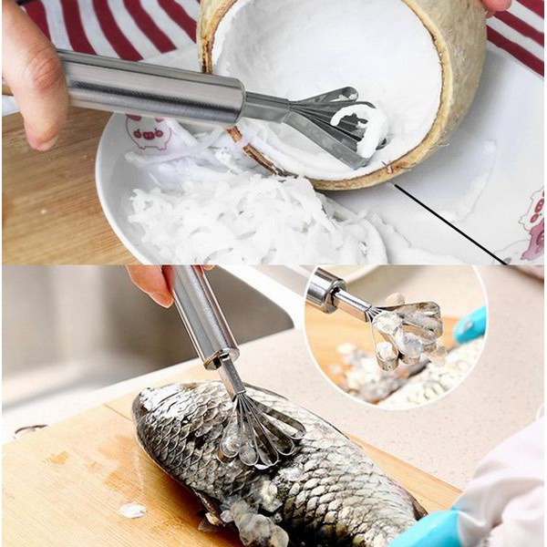 Nhà cửa & Đời sống > Dụng cụ nhà bếp > Bàn nạo, dụng cụ bào, cắt || Dụng cụ đánh vảy cá và nạo dừa đa năng bằng thép không gỉCòn hàng