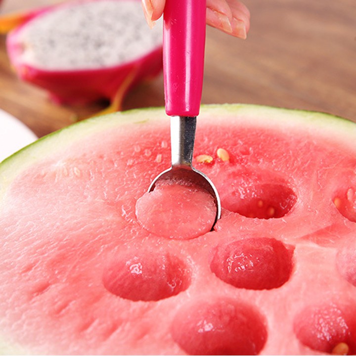 Dụng cụ Dao Thìa muỗng inox 2 đầu khắc tỉa nạo tạo hình hoa quả múc dưa hấu trái cây đầu muôi có lỗ tạo viên• 2 đầu bằng thép không gỉ inox