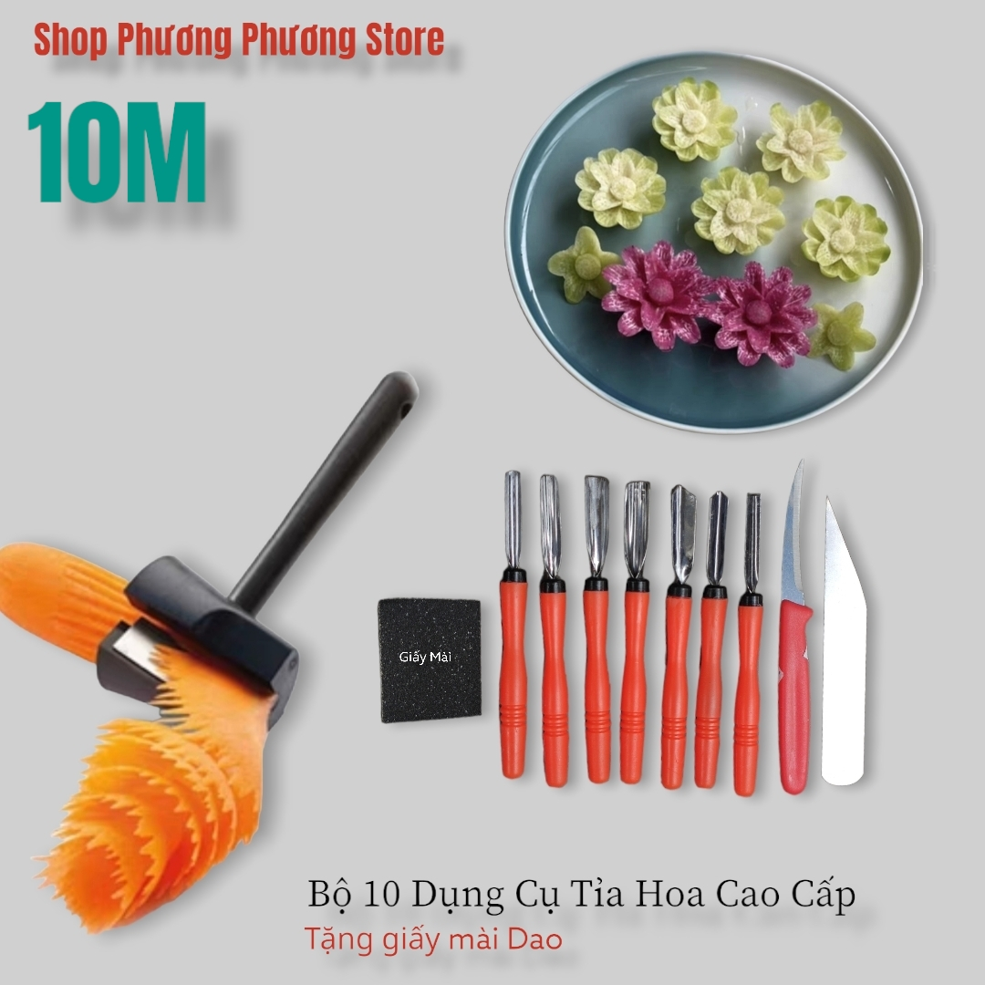 Bộ dụng cụ - dao tỉa hoa quả 10 món nghệ thuật cao cấp ( tặng kèm giấy mài)