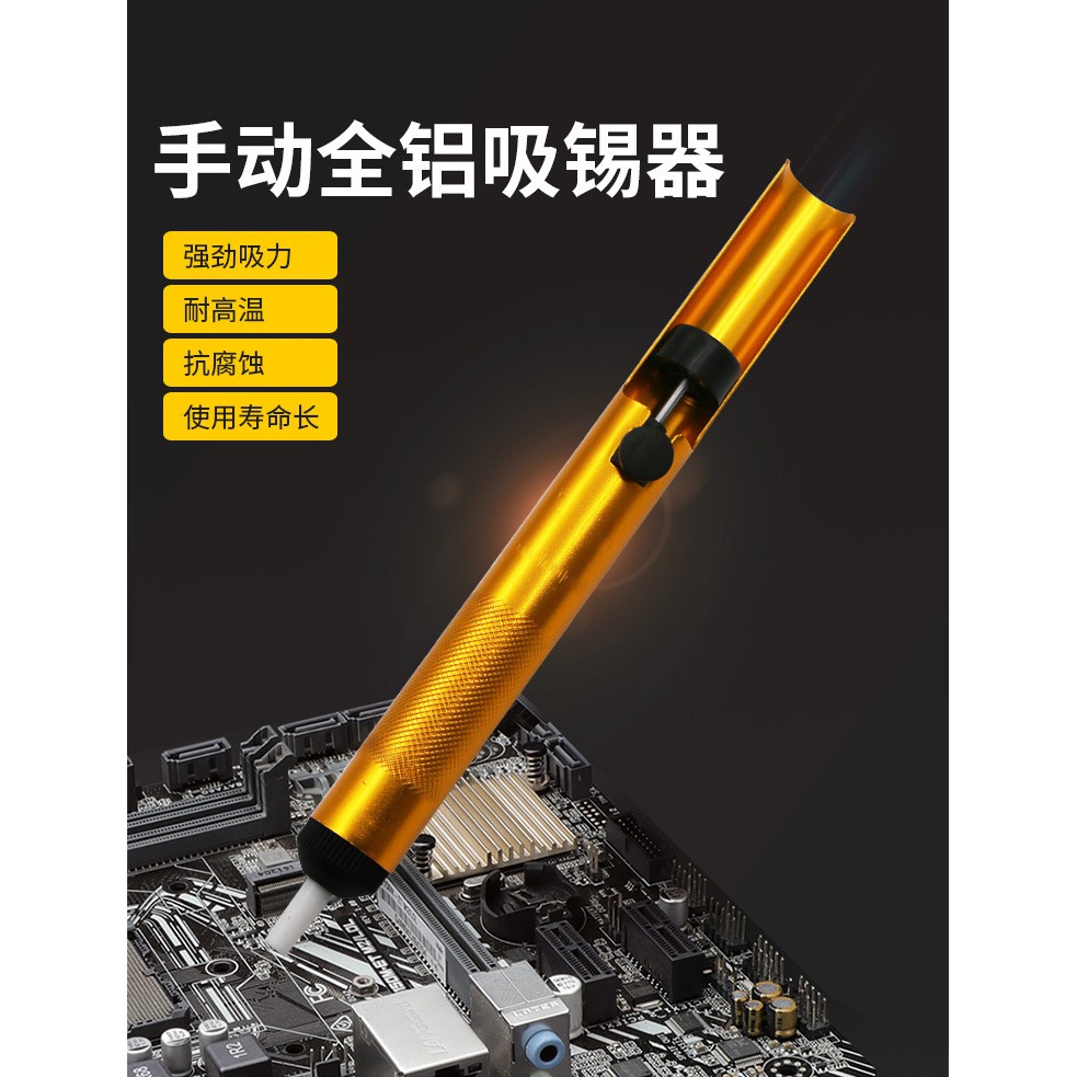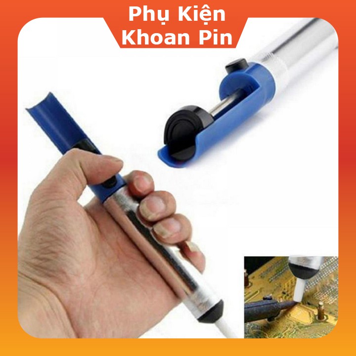 Súng hút thiếc là một trong những phụ kiện hàn rất quen thuộc và cần thiết đối với những bạn thường xuyên phải hàn mạch, chế cháo... được dùng để hút thiếc thừa, tháo chân linh kiện. Súng hút thiếc được thiết kế rất nhỏ gọn tiện lợi và dễ dàng sử dụng. súng hút thiếc được thiết kế dạng hình trụ chắc chắn bền bỉ.