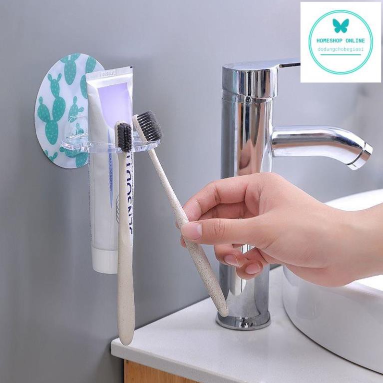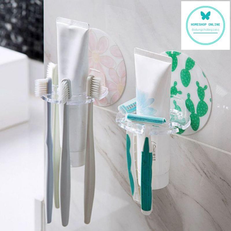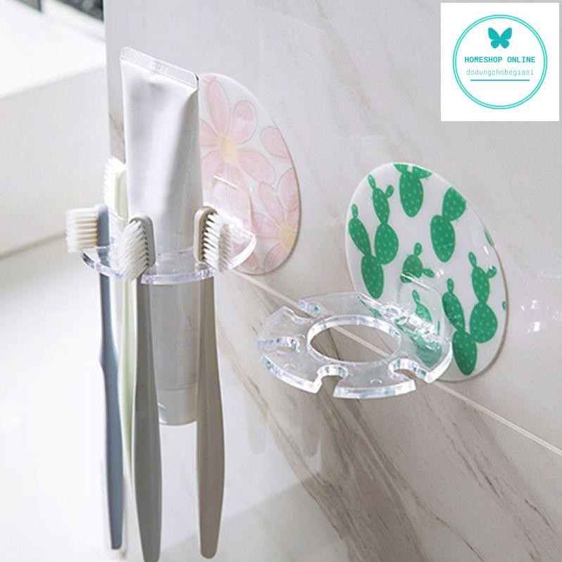 Dụng cụ để bàn chải đánh răng Giá dán tường để bàn chải chải kem đánh răng họa tiết loại 1 siêu chắc