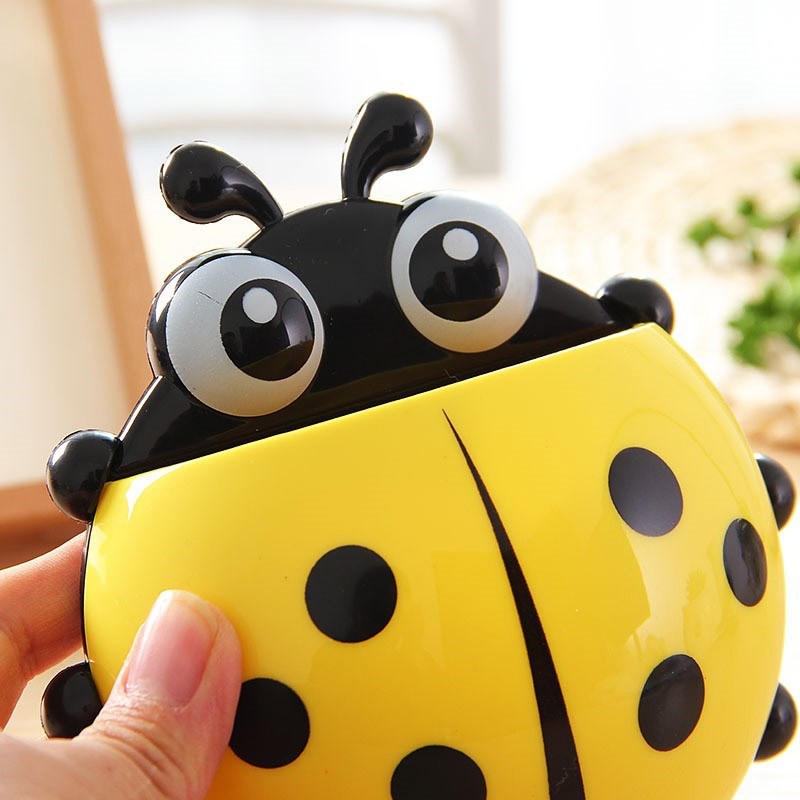 Giá treo để bàn chải, tuýp kem đánh răng hình con bọ rùa ngộ nghĩnh - Kệ hút chân không treo tường tiện lợi (BCC04)