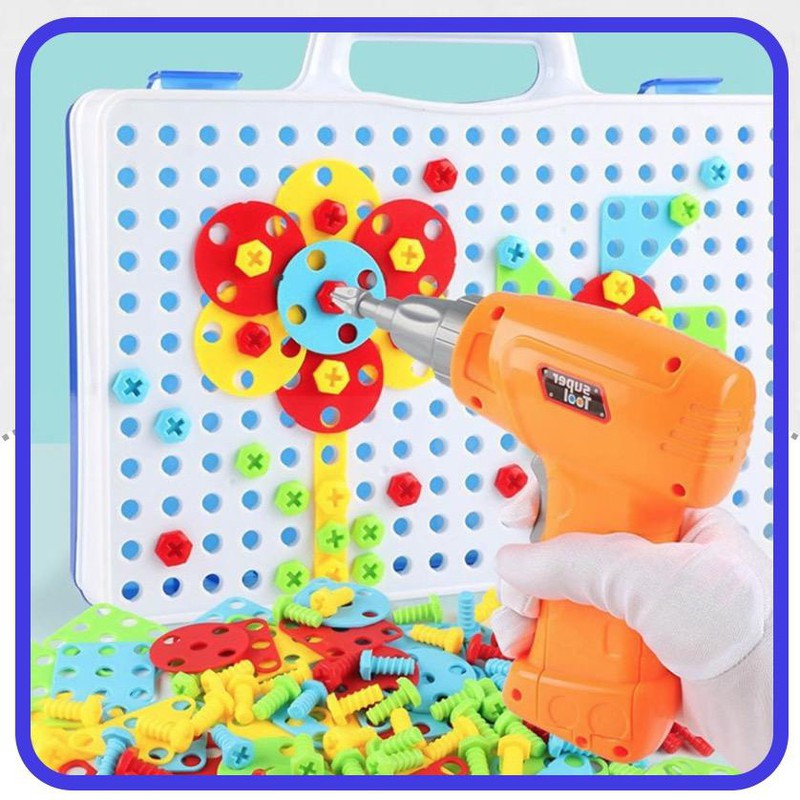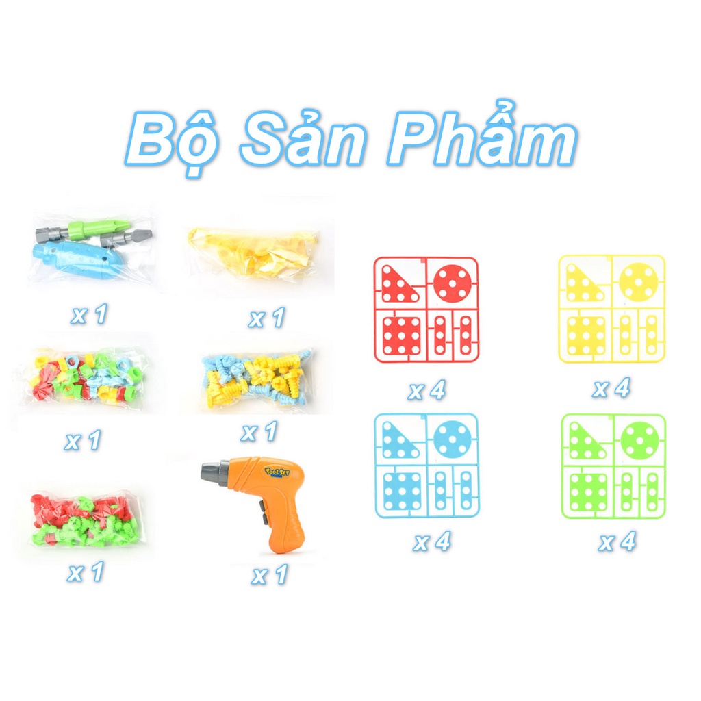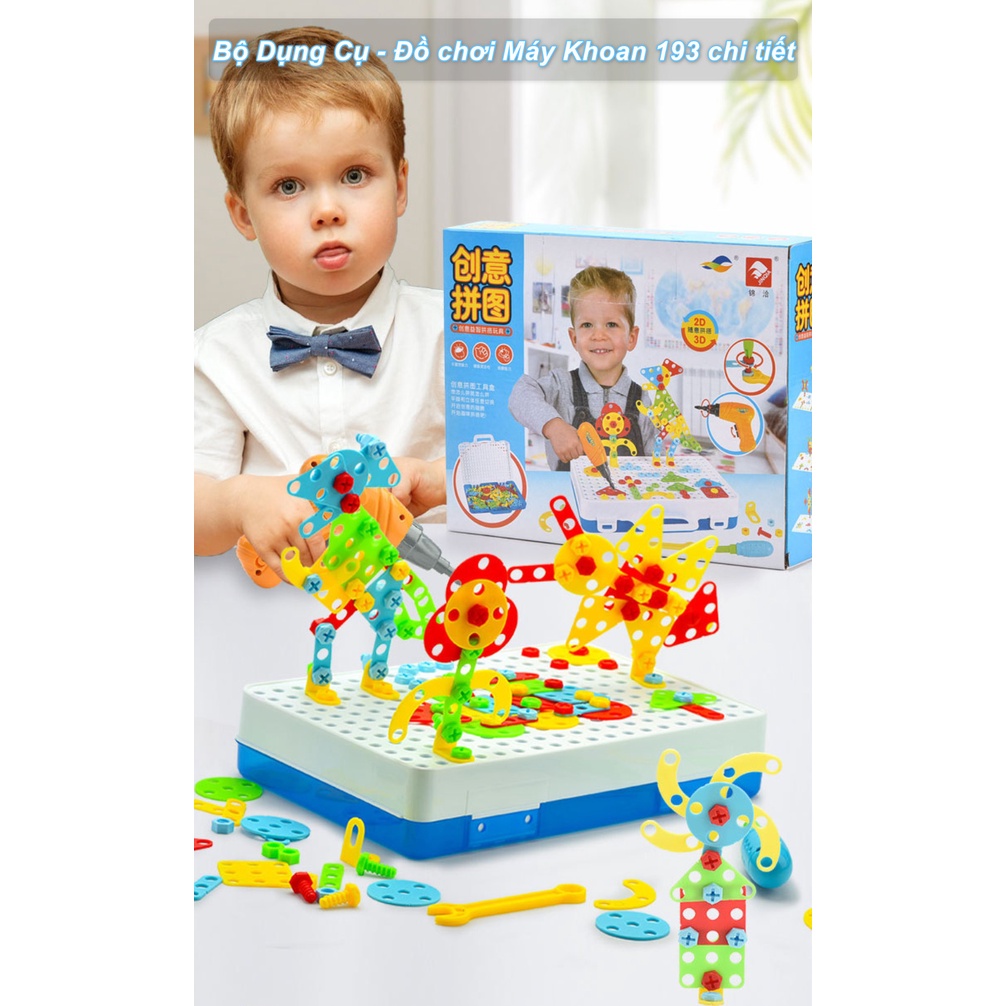 Đồ chơi Máy Khoan nhựa an toàn cho bé 193 chi tiết+ Chất liệu: ABS