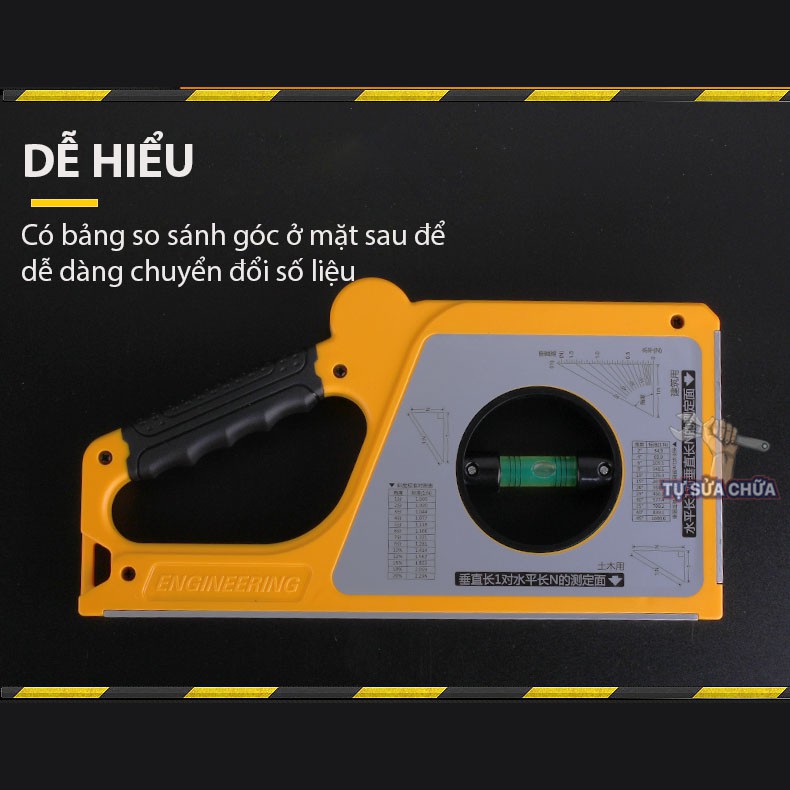 _ Cách dùng: đặt thước lên mặt phẳng cần đo góc, lấy góc bằng cách xoay núm vặn sao cho bọt thủy của ống nivel căn giữa rồi đọc số đo góc độ ngay vạch chỉ màu đỏ.