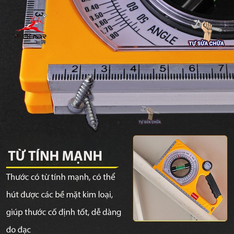Giới thiệu Dụng cụ đo độ nghiêng 360 độ có nivo từ tính mạnh chính hãng R'deer