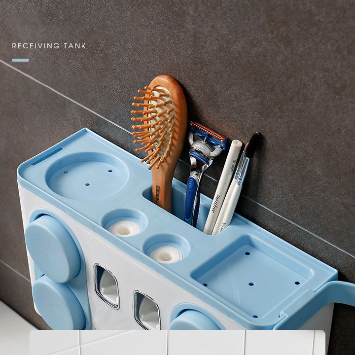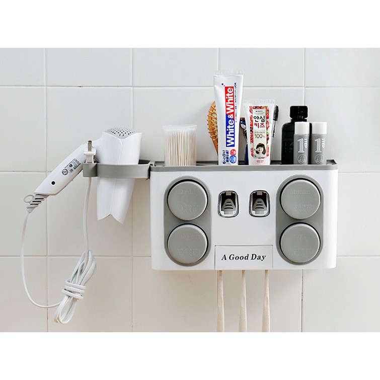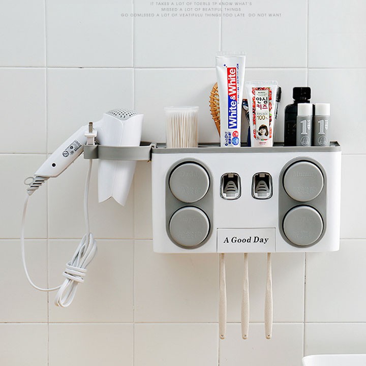 DỤNG CỤ ĐỰNG VÀ NHẢ KEM ĐÁNH RĂNG KÈM 4 CỐC XINH XẮN KỆ TREO MÁY SẤY LƯỢC CHẢI ĐẦU