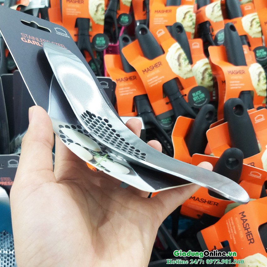 - Dụng cụ kẹp tỏi, hành inox cao cấp giúp bạn nghiền nhuyễn gia vị một cách nhanh chóng, tiết kiệm thời gian và công sức khi nấu nướng.