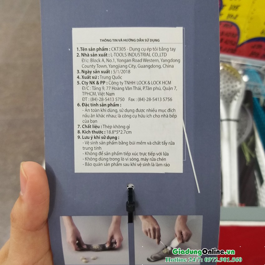 Dụng cụ ép tỏi bằng tay Lock&lock CKT305- Thương hiệu: Chính hãng Lock&lock
