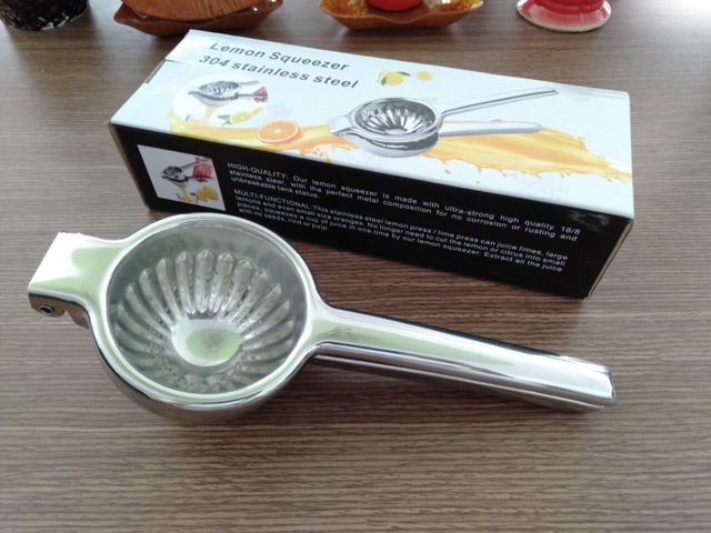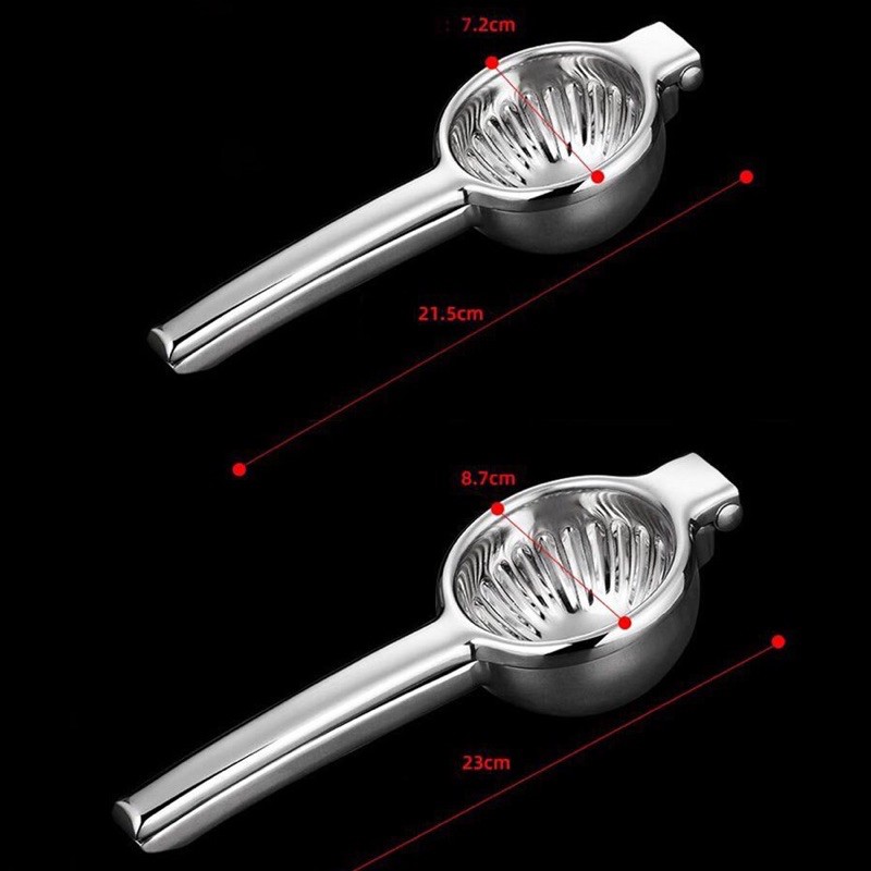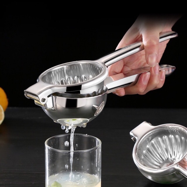 Dụng cụ ép nước cam chanh được làm bằng chất liệu inox 304 ko gỉ cao cấp, dày dặn cầm rất chắc tay. Bạn không cần phải mất quá nhiều lực để lấy hết nước cốt cam-chanh, chỉ cần bóp nhẹ tay cầm, nước cốt cam-chanh sẽ chảy xuống bên dưới một cách dễ dàng. Dụng cụ này cũng đồng thời giúp bạn lọc bỏ các tép chanh và hạt chanh.