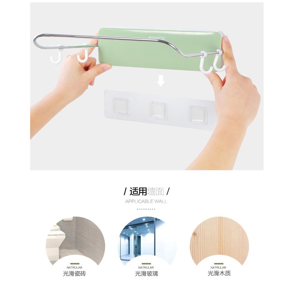 – Sản phẩm có thể cố định được trên tường với các miếng dán vững chắc, mà không cần phải đục khoét tường