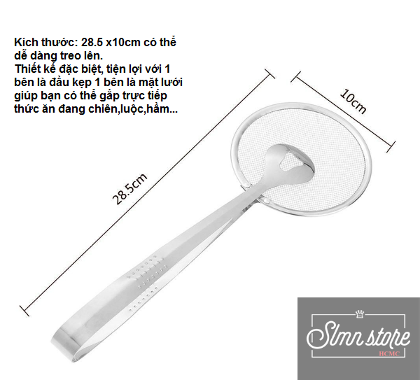 – Thiết kế đặc biệt tiện lợi với một bên là đầu kẹp một bên là mặt lưới giúp bạn có thể gắp trực tiếp thức ăn đang chiên, luộc, hầm…Làm ráo nước, dầu ăn…