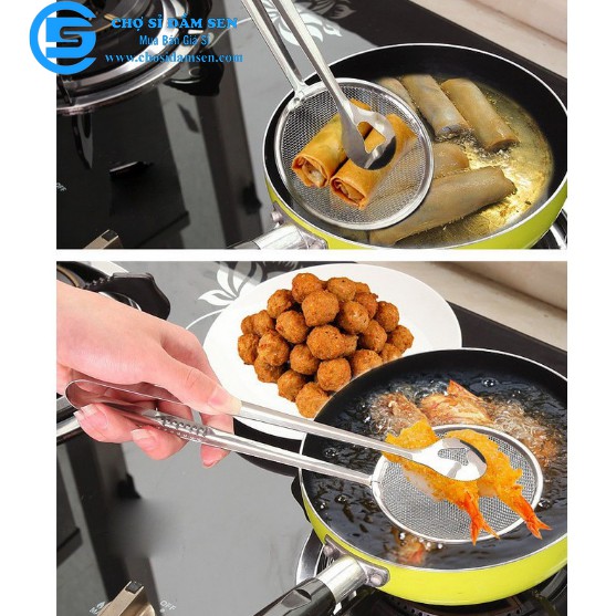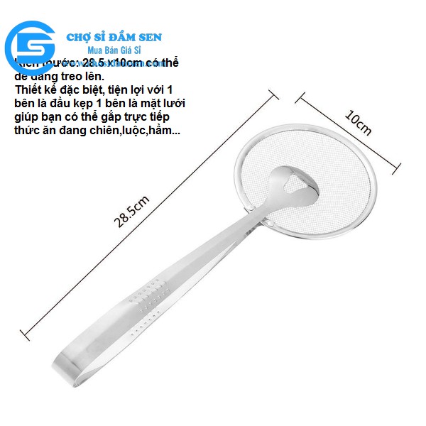 – Thiết kế đặc biệt tiện lợi với một bên là đầu kẹp một bên là mặt lưới giúp bạn có thể gắp trực tiếp thức ăn đang chiên, luộc, hầm…Làm ráo nước, dầu ăn…
