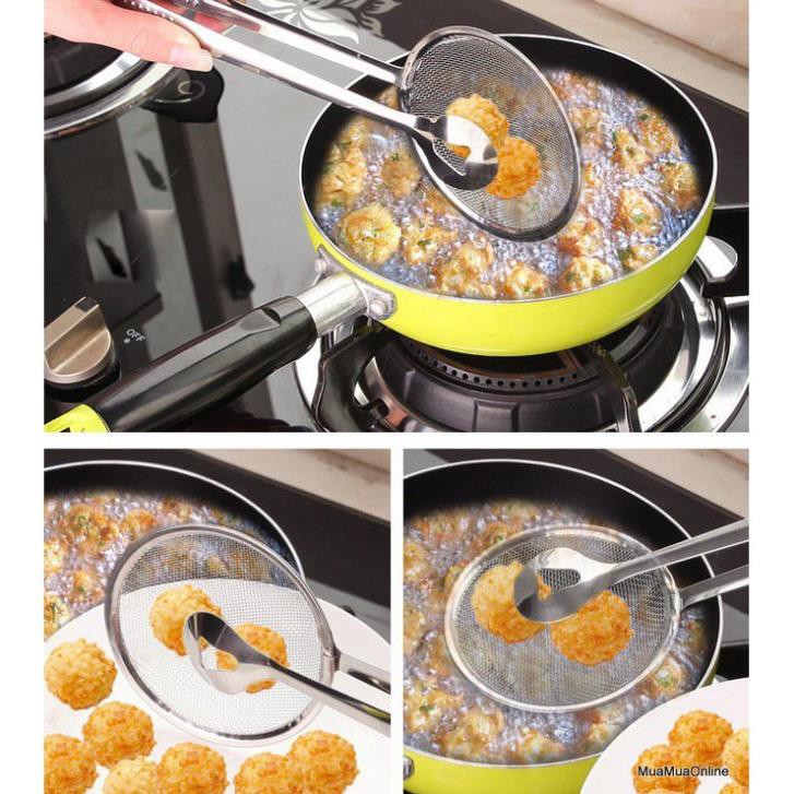 Thiết kế đặc biệt, tiện lợi với 1 bên là đầu kẹp, 1 bên là mặt lưới, giúp bạn có thể gắp trực tiếp thức ăn đang chiên, luộc, hầm… thực phẩm sẽ được ráo nước cũng như hạn chế tối đa việc đọng lại dầu mỡ.