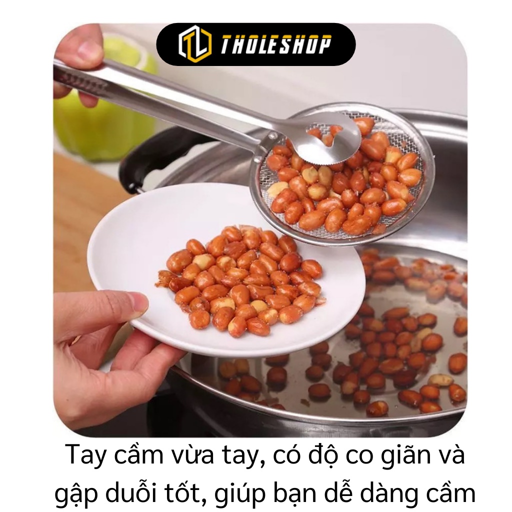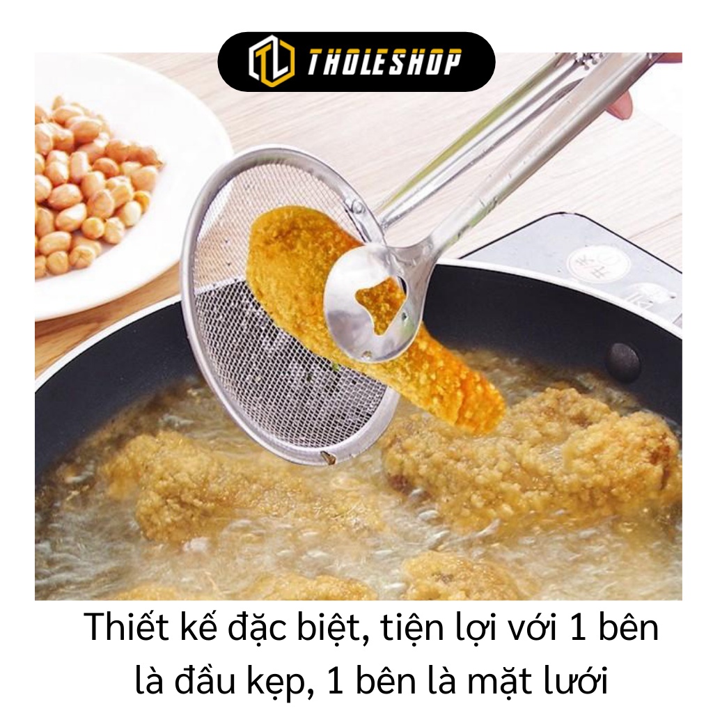 ✯ Thiết kế đặc biệt, tiện lợi với 1 bên là đầu kẹp, 1 bên là mặt lưới, giúp bạn có thể gắp trực tiếp thức ăn đang chiên, luộc, hầm… thực phẩm sẽ được ráo nước cũng như hạn chế tối đa việc đọng lại dầu mỡ.