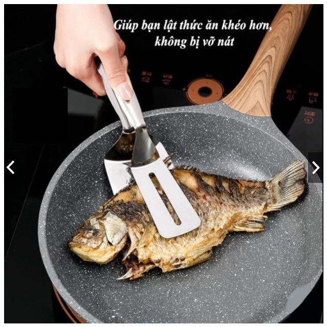 ⚜️ Thiết kế kẹp chuyên dụng giữ chặt thức ăn ở giữa, phần xẻng mỏng có rãnh dễ dàng lật, trở mặt các món chiên xào rán một cách nhanh chóng trong quá trình chế biến như chiên cá, chiên trứng, bánh, bít tết, pizza, khoai tây, chả giò…