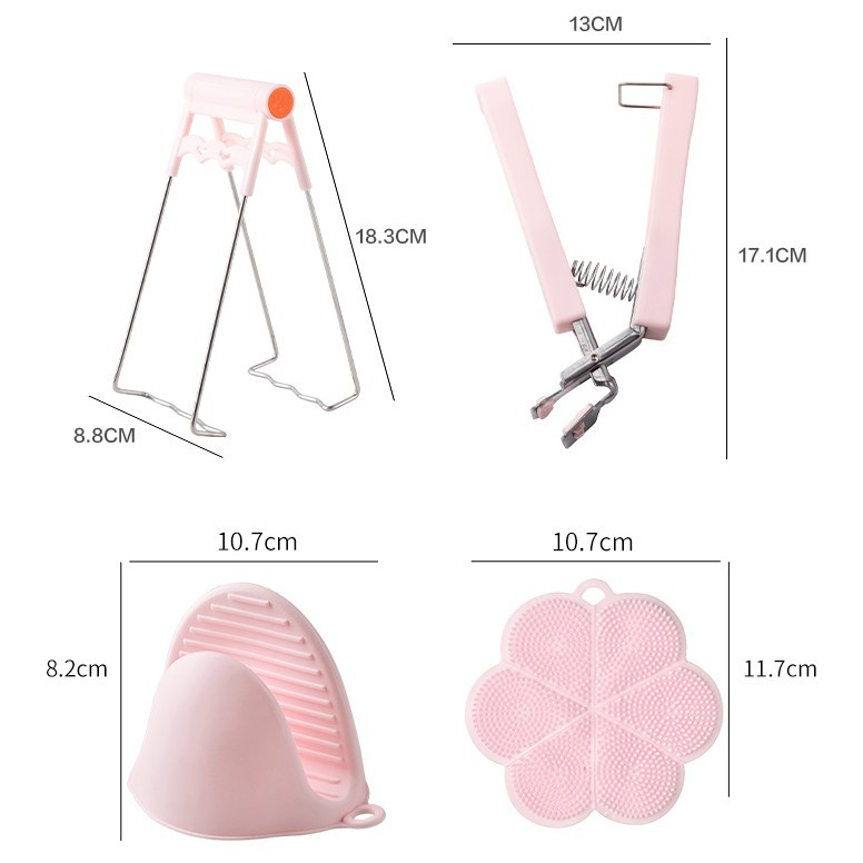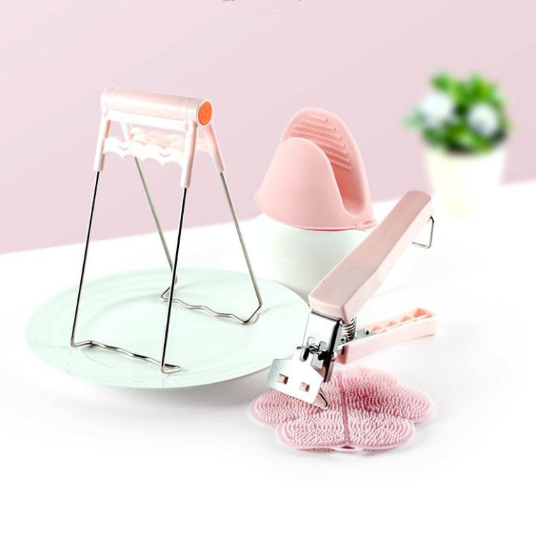 Bộ dụng cụ gắp đồ nóng, kẹp bát đĩa, găng tay bắc nồi mỏ vịt, miếng rửa bát silicon 6 chi tiết