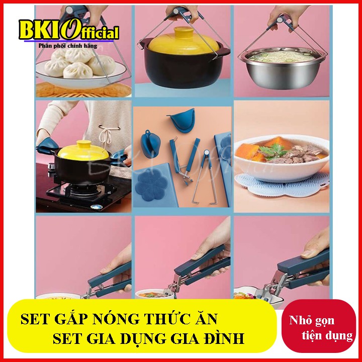 Set gia dụng, Bộ dụng cụ Nhấc nồi cách nhiệt chống nóng tiện dụng kẹp gắp đồ ăn nóng Lót nồi siliconCái set phụ kiện gắp đồ nóng này hay nè chị em🙋🏻♀️🙋🏻♀️