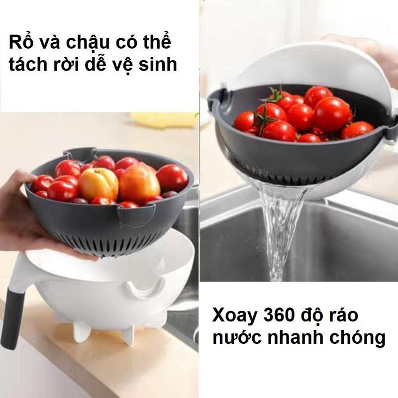 Bộ Rổ Rửa gọt sợi rau củ 9in1 Đa NăngChất liệu: Nhựa PP, thép không gỉ an toàn