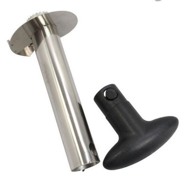 Để sử dụng dụng cụ gọt vỏ trái thơm dễ dàng hơn, trước tiên bạn phải cắt phần đầu quả thơm, rồi đặt dụng cụ gọt vỏ dứa vào giữa quả thơm và đẩy xuống. Chỉ sau 30 giây, bạn sẽ có ngay những miếng thơm thật hấp dẫn và đẹp mắt.