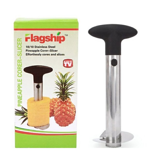 Trái thơm không những là một loại trái cây nhiệt đới tốt có hương vị thơm ngon, ngọt ngào mà còn có những tác dụng không ngờ với sức khỏe.Tuy nhiên, bạn lại cảm thấy phiền toái khi phải ngồi tỉ mỉ cắt từng cái mắt thơm?Với dụng cụ tiện ích này, bạn sẽ rất dễ dàng cắt phần thịt trái thơm theo hình xoắn ốc và để lại lõi dứa mà không cần phải gọt vỏ hay cắt mắt nữa.Thật tiện lợi và nhanh chóng phải không nào giờ đây cắt gọt thơm không còn quá vất vả với chị em phụ nữ nữa.Giúp cho chị em phụ nữ không phải vất vả như trước nữa khi gọt vỏ và lấy lỏi trái thơm, chỉ cần vài thao tác đơn giản bạn sẽ có một đĩa thơm đẹp mắt.