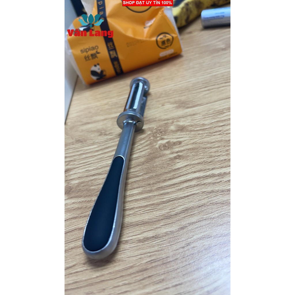 - Phía tay cầm dài và chắc chắn, kèm thêm phần móc treo lên khi không sử dụng, đảm bảo vệ sinh và không gây han gỉ.