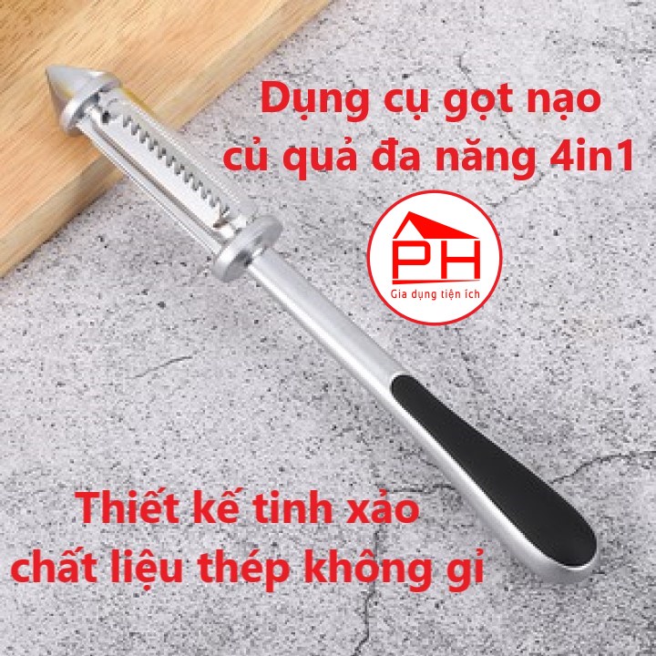 DỤNG CỤ GỌT NẠO BÀO CỦ QUẢ thép không gỉ dao gọt vỏ trái cây inox đa năng 4 in 1 tiện dụng - Gia dụng Phước Hòa