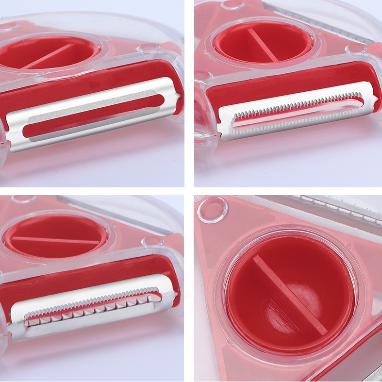 + Dụng cụ tiết kiệm thời gian cho chị em nội trợ với thiết kế khoa học dùng để gọt vỏ ,thái sợi,đục lỗ lại nhỏ gọn dễ vệ sinh, tránh rủi ro khi gọt bằng dao