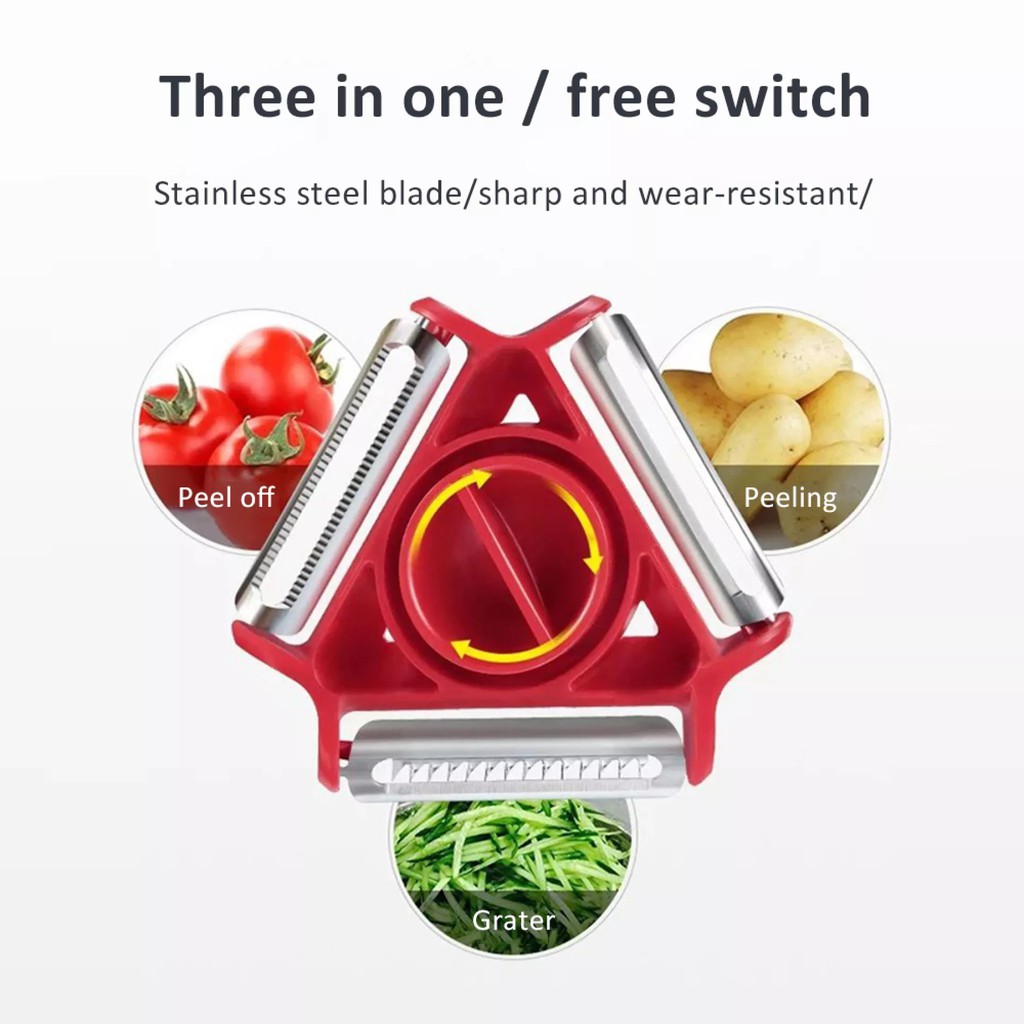 Dụng Cụ Gọt Vỏ Trái Cây, Nạo Sợi Rau Củ 3 Trong 1 Bằng Thép Không Gỉ Tiện Dụng Cho Nhà Bếp Xoay Được