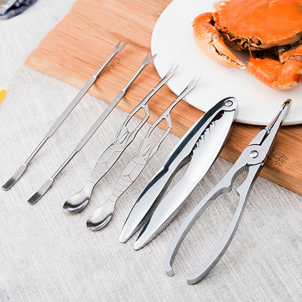 Bộ Dụng Cụ Hải Sản 6 Món Bằng Thép Không Gỉ, Que Cua Bộ Thìa Dụng Cụ Bóc Vỏ Tôm Cua Kẹp Tôm Hùm Bộ Kẹp Kìm