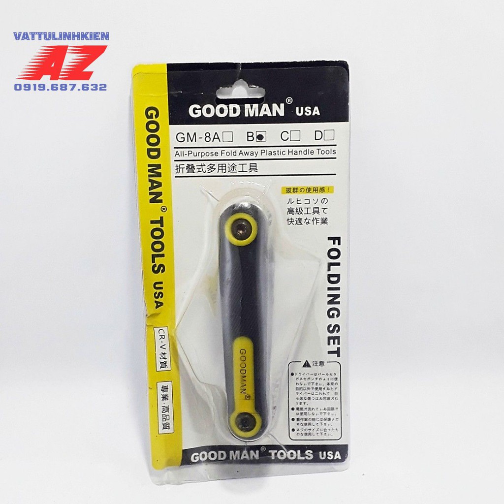 Nhà cửa & Đời sống > Dụng cụ & Thiết bị tiện ích > Dụng cụ > Hộp dụng cụ cầm tay || Bộ dụng cụ hoa thị gấp GOODMAN 8 chi tiếtCòn hàng