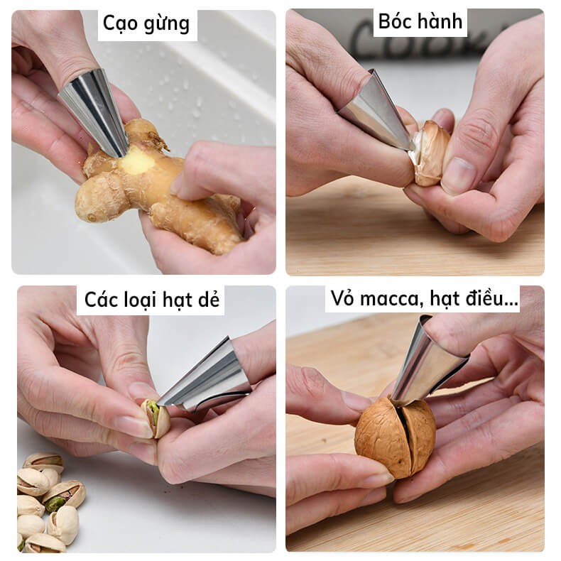 ✮ Sản phẩm được thiết kế thông minh, đơn giản, làm bằng inox 304 không gỉ. Giúp bảo vệ ngón tay khi thái củ, quả, ✮ ✮ đồ ăn hay dễ dàng bóc vỏ hạt đậu, hạt dẻ, bóc vỏ cam, bưởi… mà không làm hỏng móng tay, là sản phẩm không thể thiếu trong gian bếp nhà bạn,