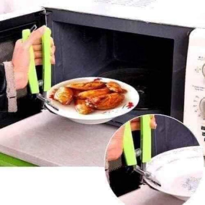 - Dụng cụ này giúp dễ dàng kẹp bát đĩa nóng ra khỏi lò vi sóng hay nồi hấp một cách dễ dàng và chắc chắn
